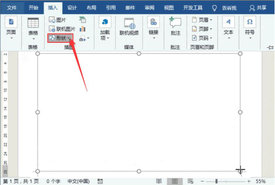 1.首先,在用word制作流程图之前,我们得点击“插入”菜单中的“形状”,从而拉出一个画布,后续我们便可以在这个画布上制作流程图了。