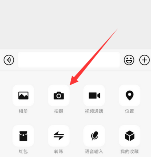 打开手机微信,进入界面,选择一个聊天窗口,如图,点击下方【拍摄】选项。
