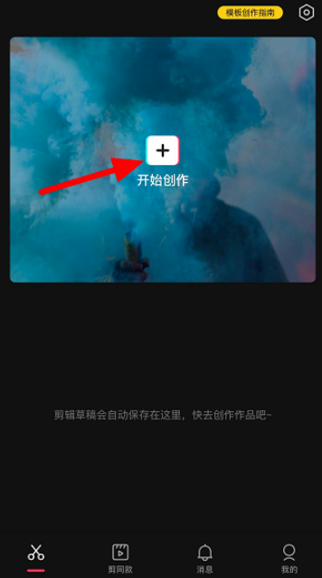 在手机中打开剪映APP,进入界面,点击【开始创作】,