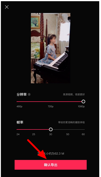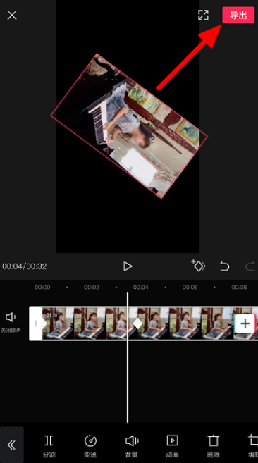 如图,画面会从第一个关键帧处第二个关键帧匀速变化,当然了,你还可以继续添加关键帧,剪辑完成,点击导出即可。