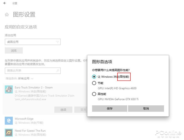 老版 Win10 的多 GPU 策略有很多限制,一是要手工建立清单,二是智能选择不明不白,让人拿不清究竟用的是哪块显卡。新版中这两个问题有了明显改进,一是系统可以自动列出所有已安装程序(包括桌面应用和 UWP 应用),省却了用户自己建立清单的麻烦。二是智能选择增加了显卡标注,究竟用的是节能显卡,还是花了你几个月饭钱的 RTX 2060,在这里都能一目了然。新版多 GPU 选择面板如下图.