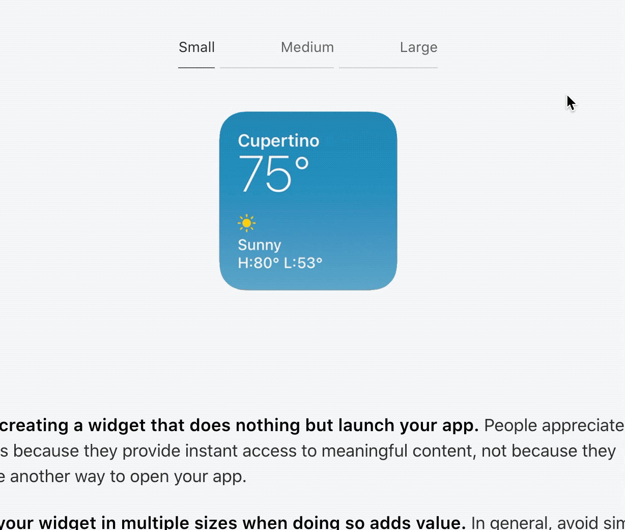 除了外观上严格且细致的要求,苹果的桌面小组件在理念上也与安卓有着很大不同。它的理念是‘将 App 内容投射到桌面’,重要的是内容而不是形式。苹果一再强调,‘小组件不是迷你 App’,所以它只做展示,不能操作和滑动。