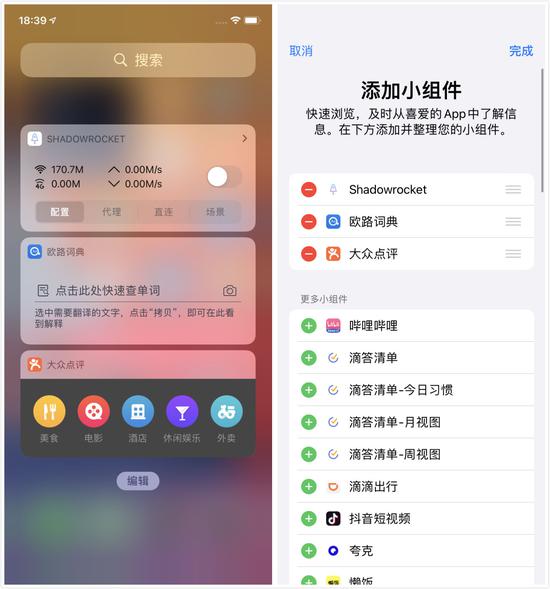 具体说来,小尺寸的小组件整体就相当于一个按钮,点击任意一处都是进入到 App 中,中尺寸和大尺寸的小组件可以进入不同区域(比如音乐小组件的专辑封面,提醒事项小组件的每个事项),但不能直接完成操作。