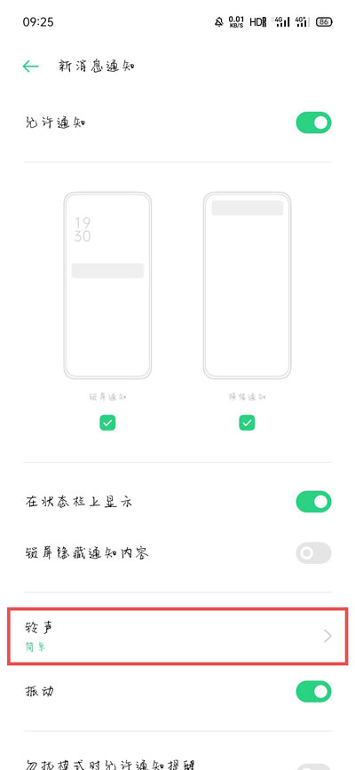 4、选择下方的【铃声】进入修改新消息通知铃声;
