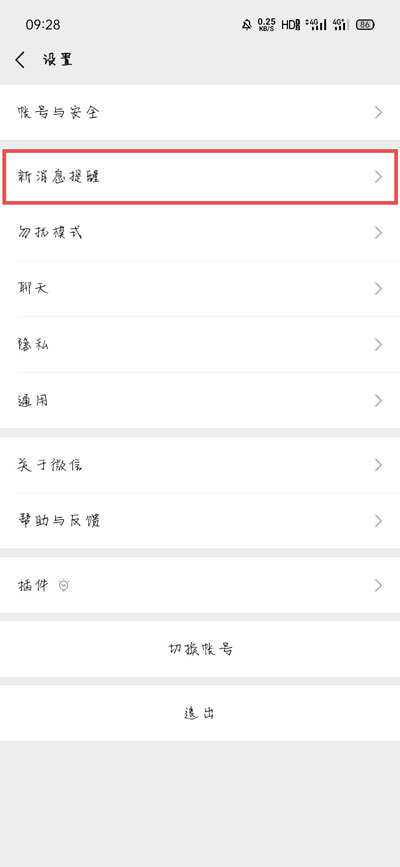 2、进入微信设置页面后,找到并点击【新消息提醒】;