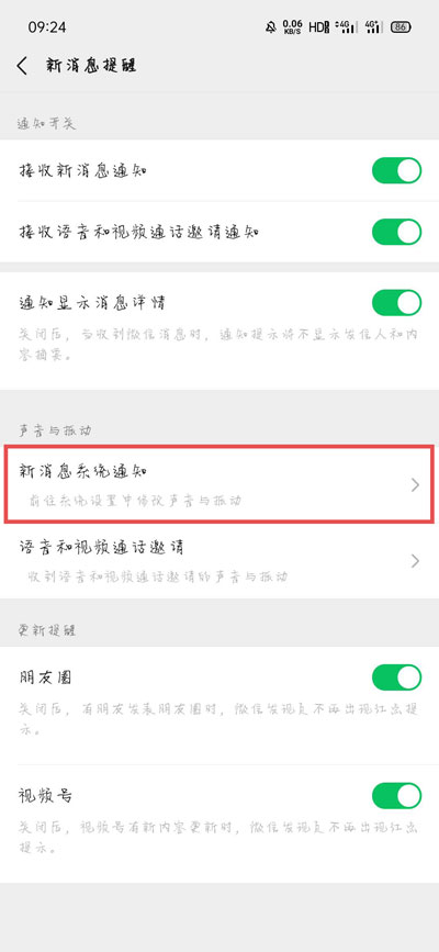 3、随后在新消息提醒页面,点击【新消息系统通知】一项;