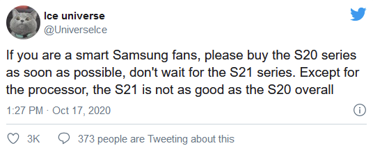 数码产品有一个长久不变的定律,那就是买新不买旧,我们通常可以期待明年的机型会比上一年更好。不幸的是,根据可靠的泄密者冰宇宙的说法,明年的三星Galaxy S21系列不会出现这种情况,甚至不如现在已经发售的产品。