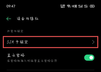 3、在设备与隐私设置中,选择【SIM卡锁定】一项;