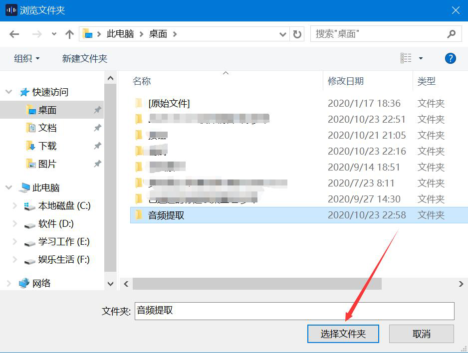 5、接着,在弹出的窗口中,设置迅捷音频转换器提取音频后的视频的保存路径。