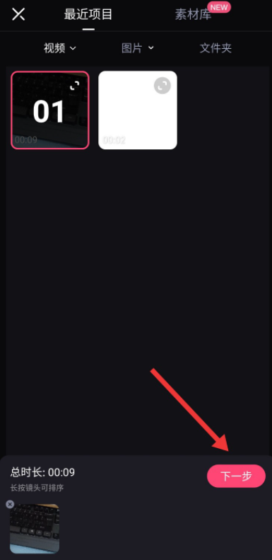 跳转至以下界面,点击【最近项目】,选择视频文件,进行下一步操作,
