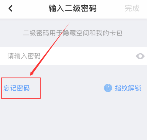 跳转至以下界面,提示输入二级密码,点击【忘记密码】,