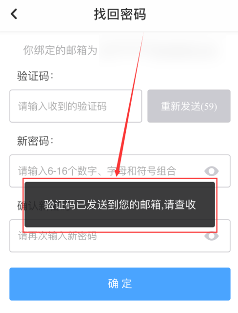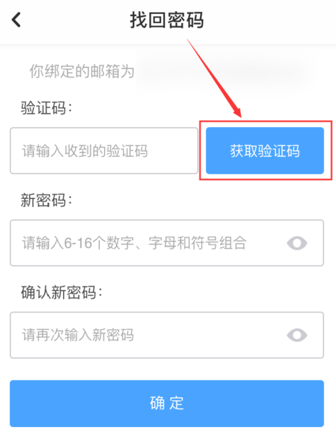 小编选择通过邮箱找回,如图,点击【获取验证码】按钮,系统就会向邮箱地址发送验证码,