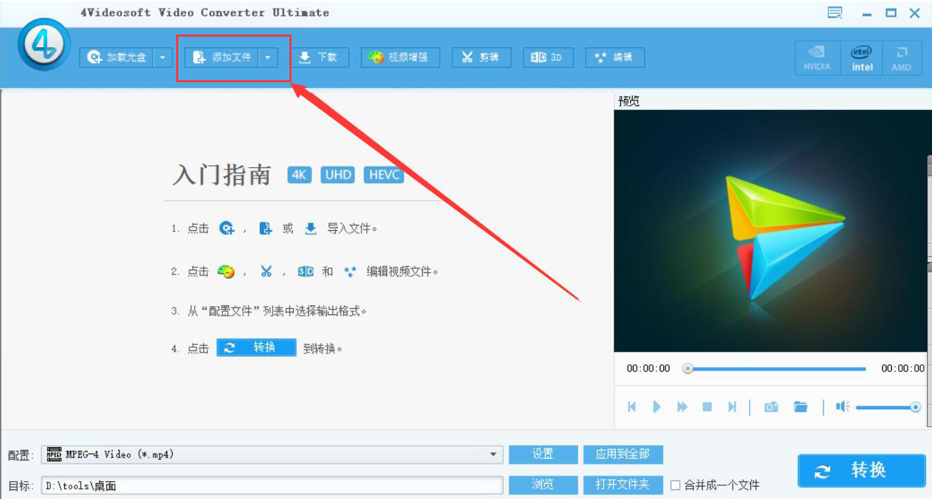 1、首先,我们打开4Videosoft Video Converter Ultimate,在操作界面中点击顶部的“添加文件”按钮。