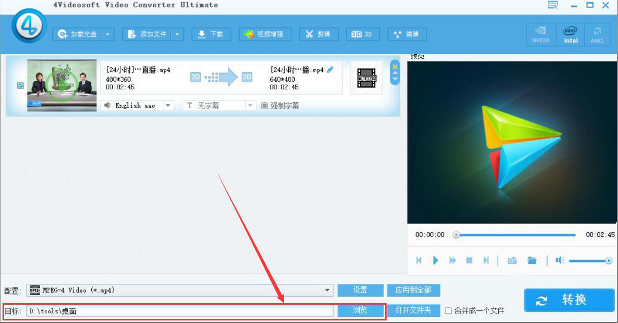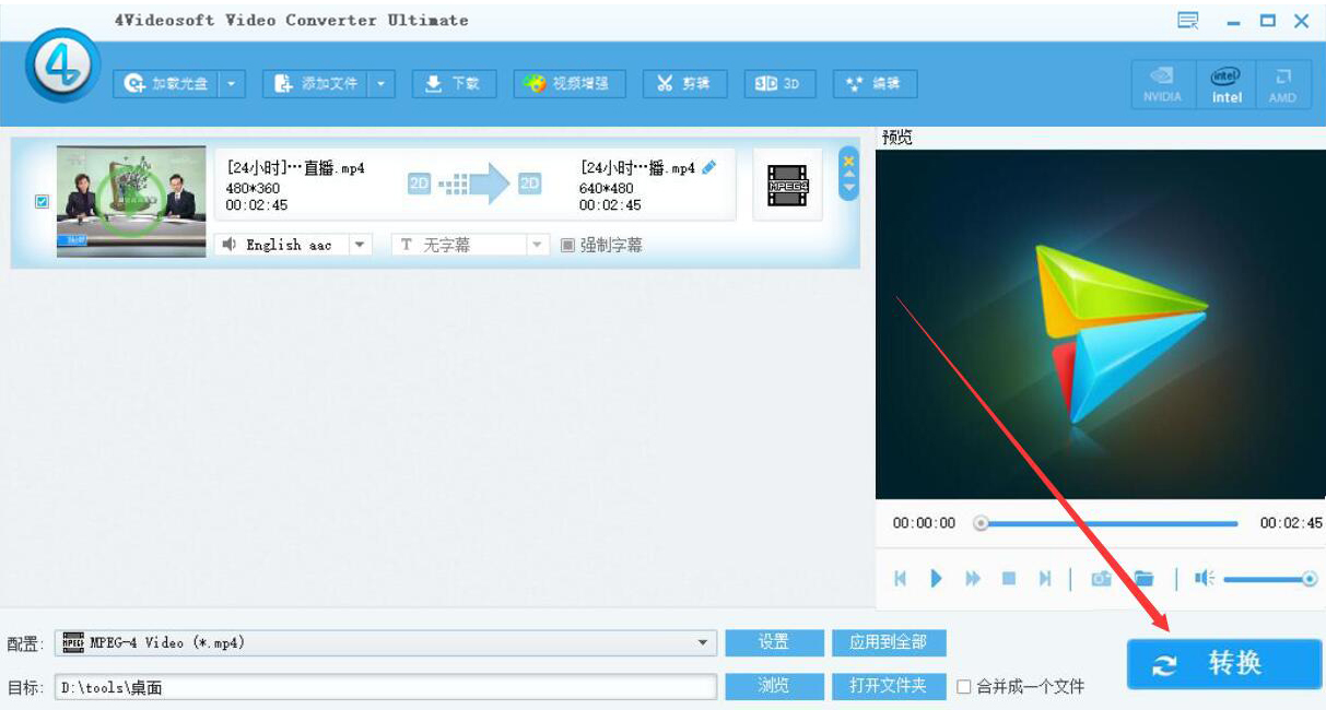 7、最后,点击界面右下方的“转换”按钮,4Videosoft Video Converter Ultimate便将应用了视频增强效果的视频文件给转换保存到指定的路径。