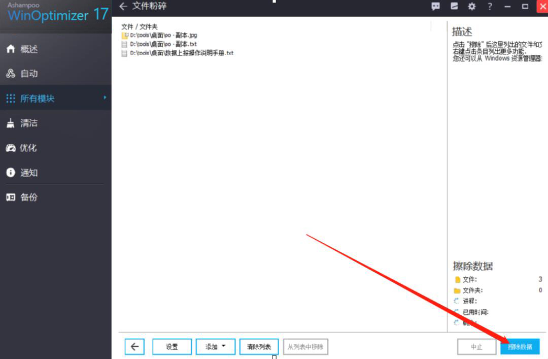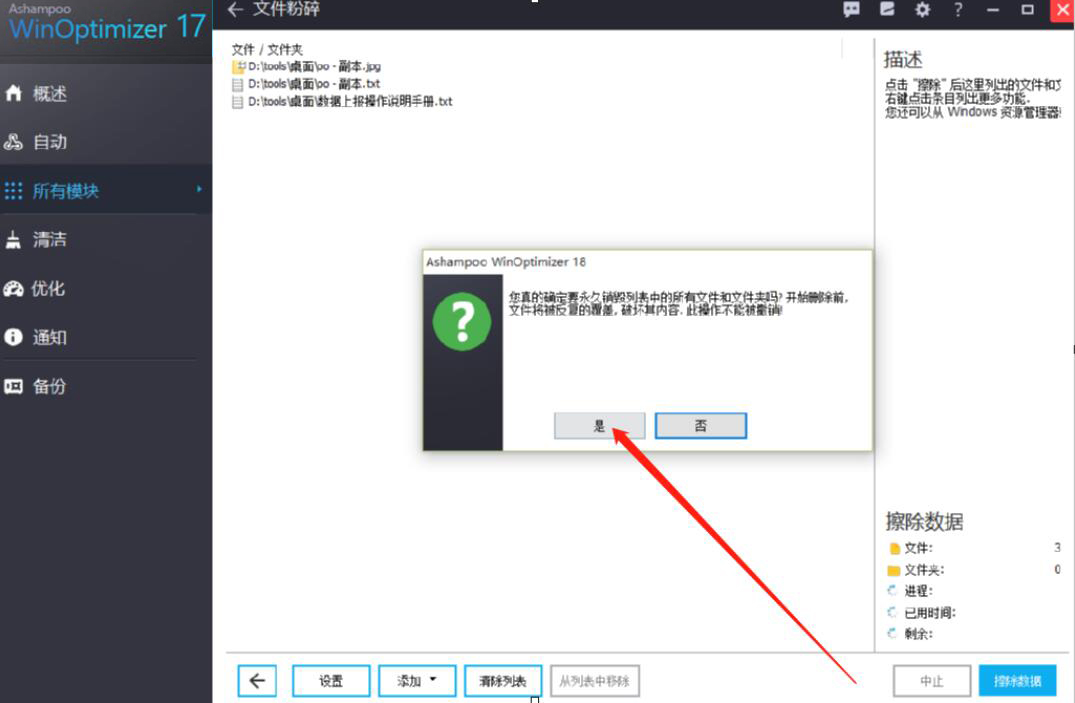 如何使用Ashampoo WinOptimizer永久删除文件?