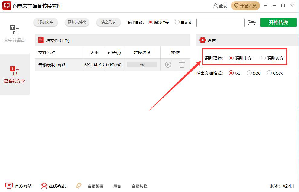 平时录制完语音后,想要将语音转文字,方便自己编辑、存档,可以用闪电文字语音转换软件来快速实现。不过要注意的是,所选的识别语种必须和语音的语种一致,这样闪电文字语音转换软件才能将语音转文字。