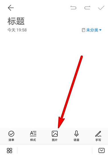 进入编辑界面,点击下方的【图片】选项,选择导入图片的方式,这里点击【从图库中选择】,