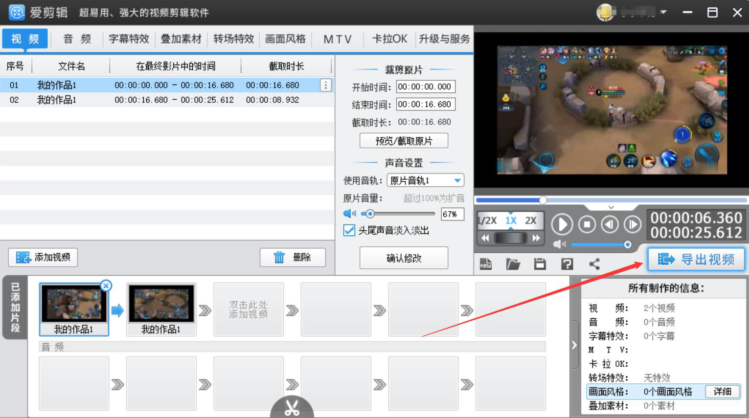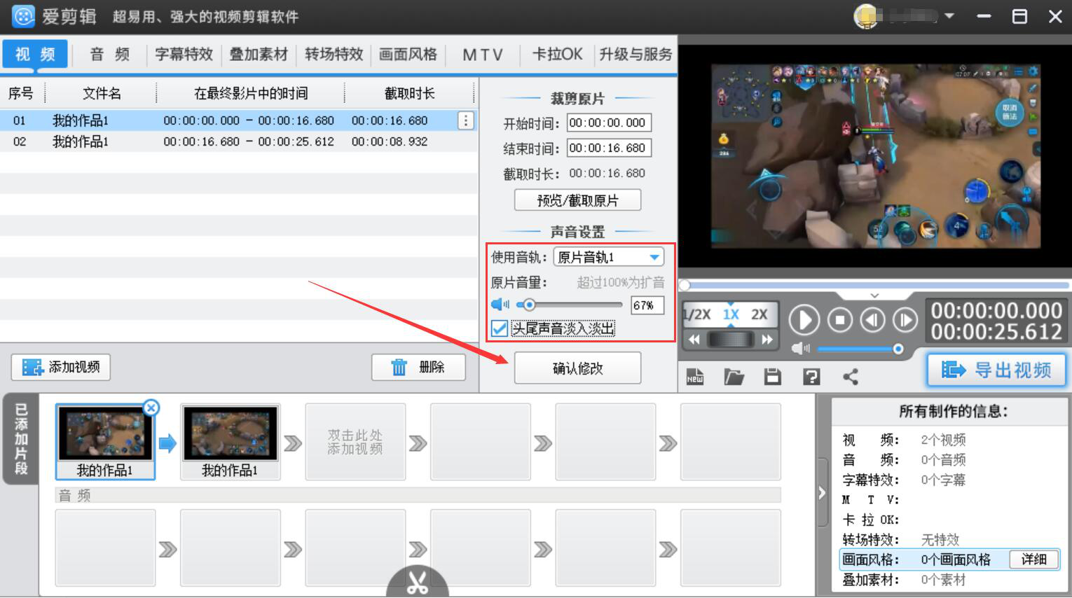 爱剪辑如何修改已添加视频的参数?