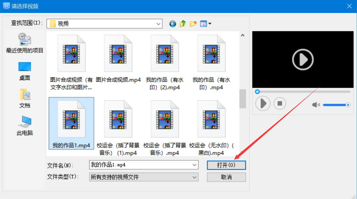 2、在弹出的窗口中,我们选择需要修改参数的视频,并点击“打开”按钮,将其导入爱剪辑。