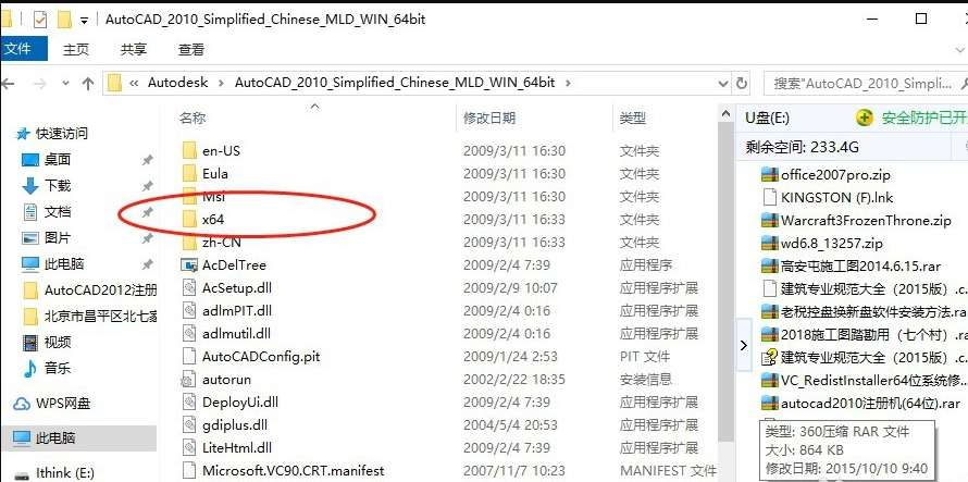 3、来到CAD安装目录,点击打开x64文件夹,