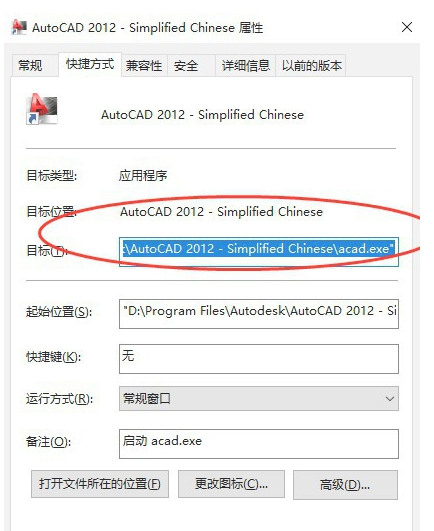 2、使用鼠标右击AutoCAD快捷方式图标,点击【属性】,查看软件安装目录,