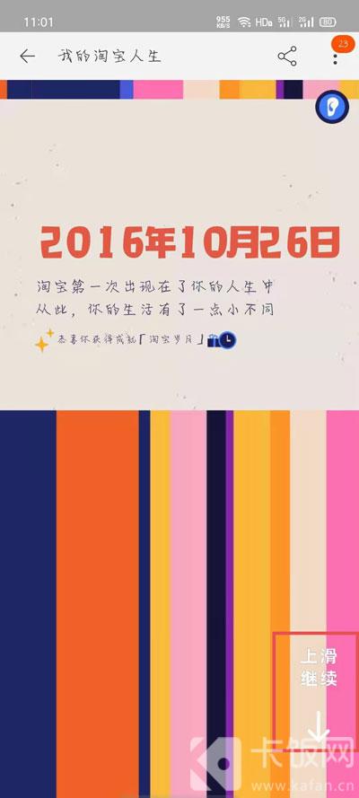 6、在淘宝人生账单中,我们可以查看自己使用淘宝的时间、花费金额、下单次数、第一件购买宝贝等等。