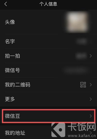 3.在个人信息页面,点击最下方的【微信豆】功能,点击进入微信豆页面;