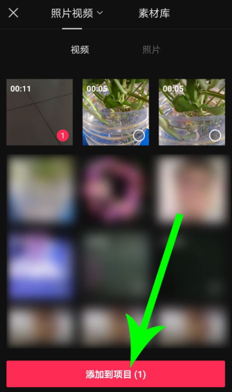 勾选视频素材,点击“添加到项目”,