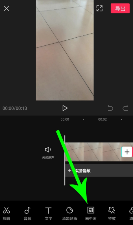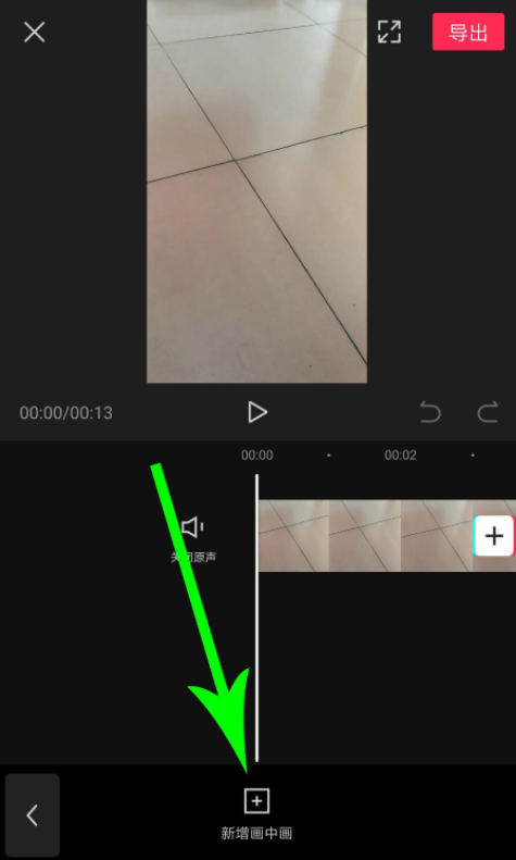 视频导入成功,进入视频剪辑窗口,在下方点击“画中画”功能,然后选择“新增画中画”,