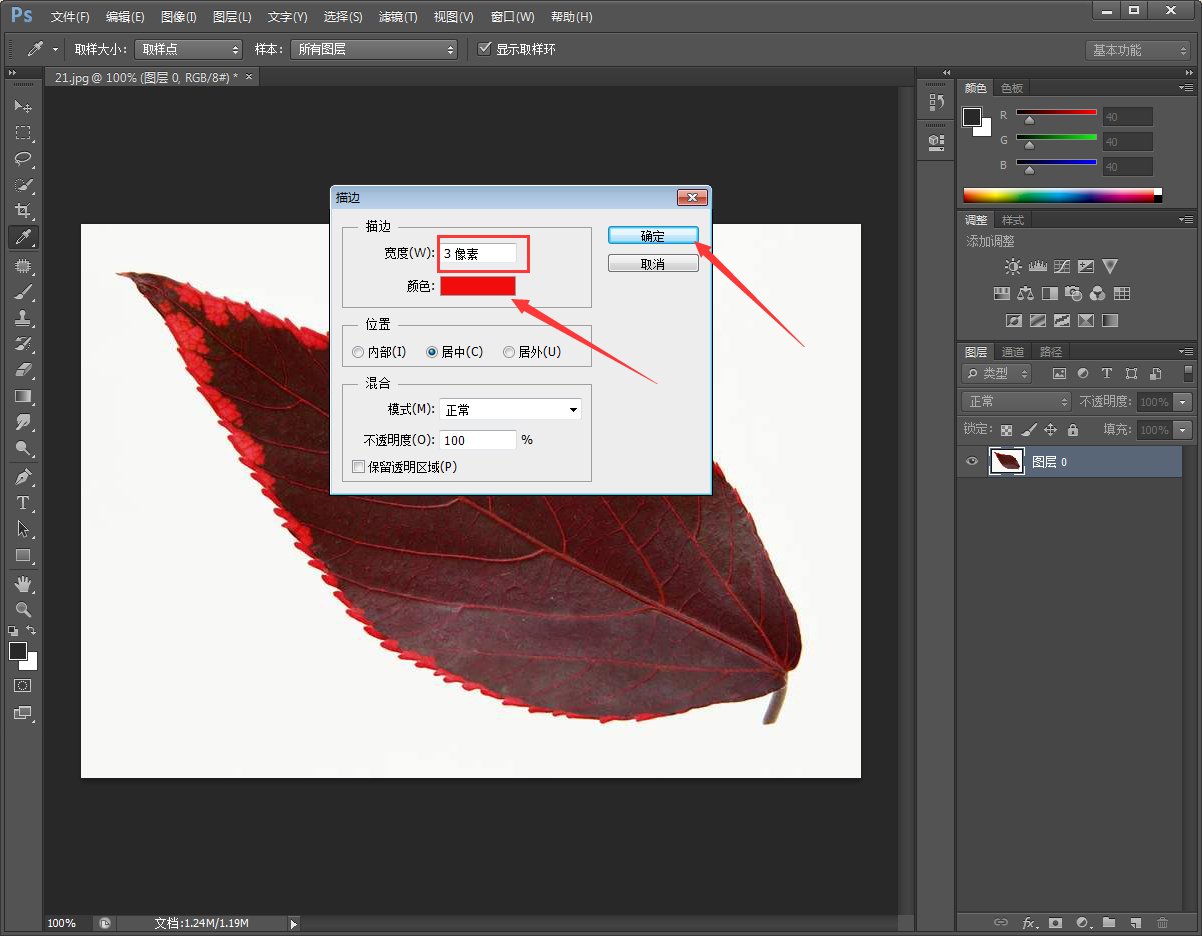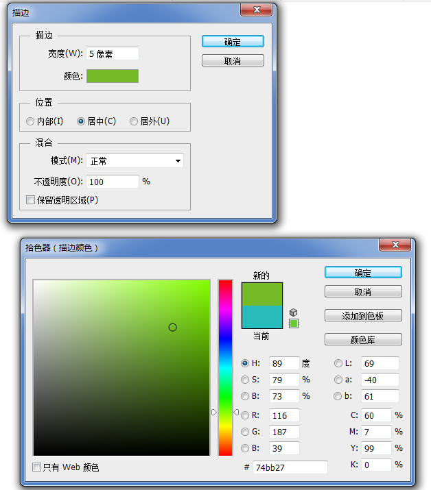 弹出对话框,如图,设置选择描边的宽度和颜色,点击确定,效果就出来了。