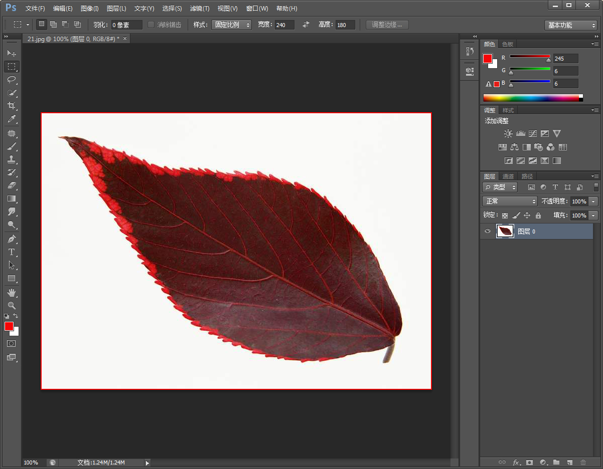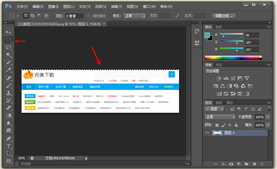 方法 1.将图片导入 PS 软件,如图,在左侧工具栏中点击矩形工具,框选图片描边范围,