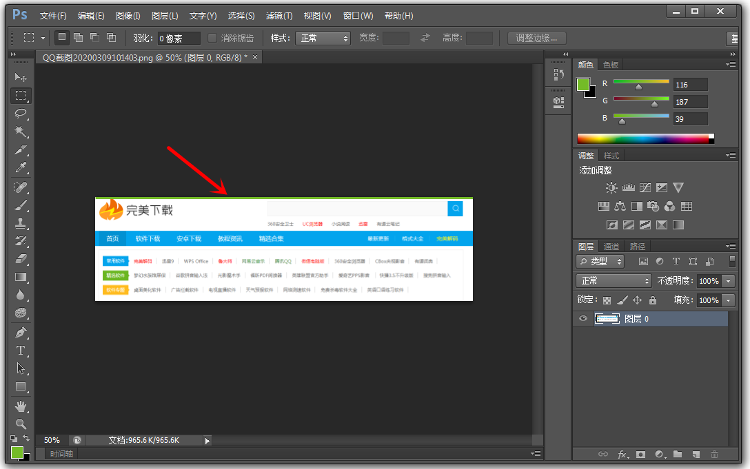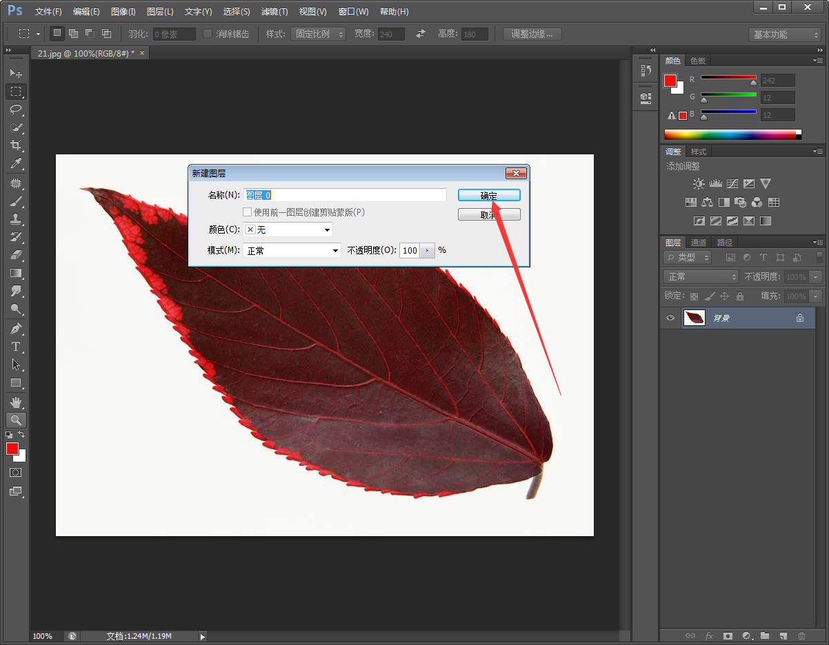 方法 2. 打开 Photoshop 软件,导入一张图片,在菜单栏中点击"图层"——"新建"——"图层",快捷键"Shift+Ctrl+N",新建一个图层,