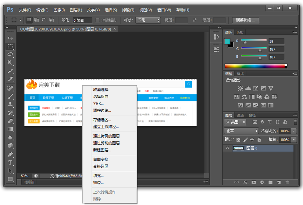 注意: PS 软件无法针对背景图层进行描边,你需要先通过选框工具得到一个选区,然后进行操作。如果大家想学习更多关于 PS 图片处理的方法和技巧,请请关注完美下载。