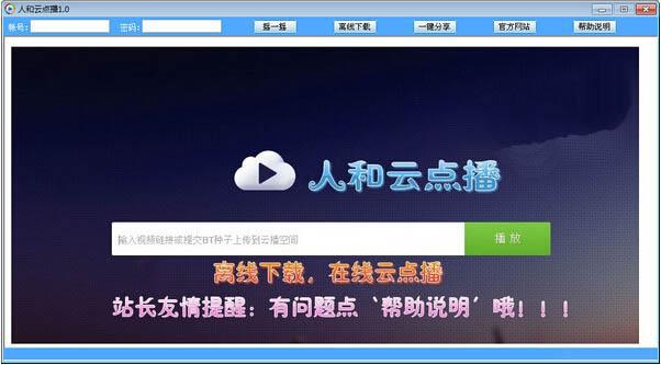 人和云点播是一款功能非常强大的云点播软件。该款软件可以直接输入视频链接或提交BT种子上传到云播空间进行播放,支持离线下载和一键分享。使用人和云点播还能够通过‘摇一摇’获取免费的 QQ 会员帐号。