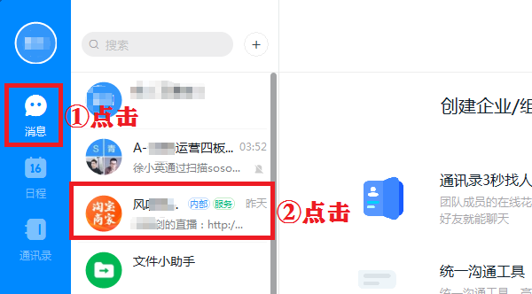 在电脑桌面上双击 钉钉 快捷方式,打开软件,登录账号,如图,在左侧菜单栏点击“消息”,找到任意一个群聊,