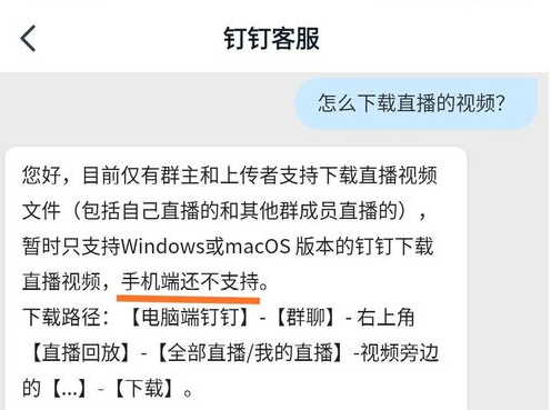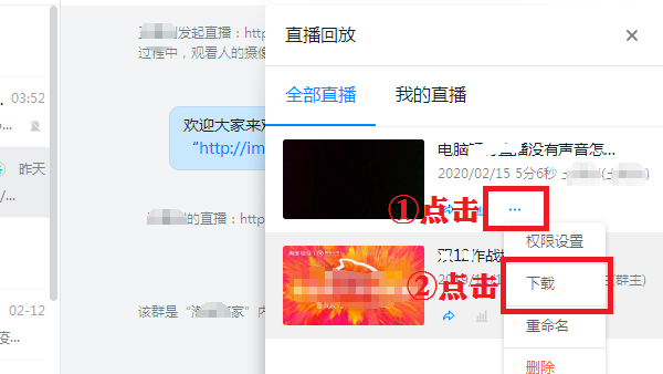 注意:目前仅支持钉钉电脑版下载直播视频,另外,如果你不是钉钉群主或者主播,即无法下载群直播视频,需要联系他们进行帮忙。