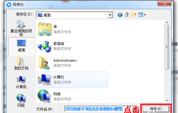 弹出对话可,选择视频保存的位置,设置文件名,点击“保存”即可,